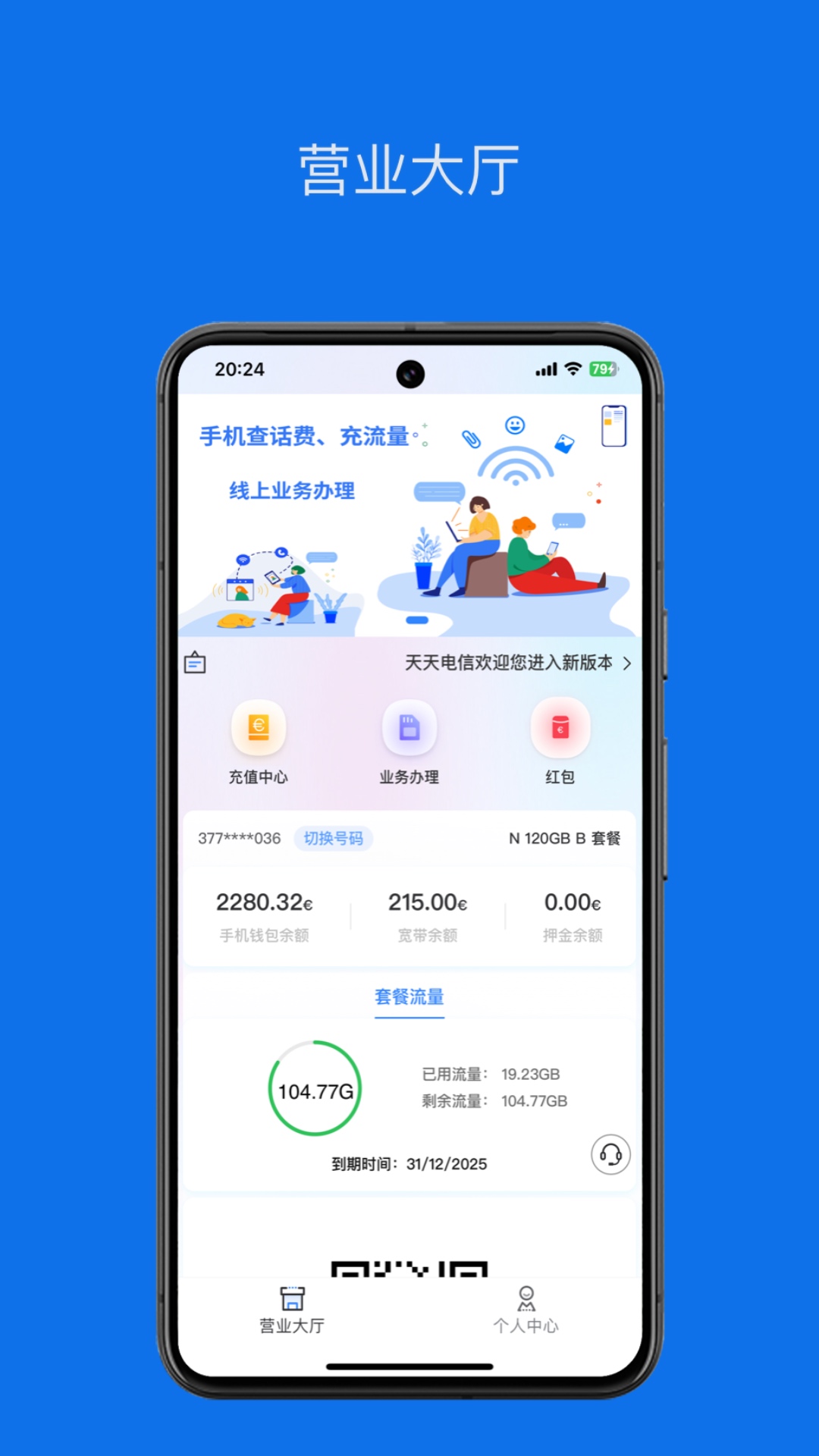 天天电信手机营业厅为您提供7×24小时快捷的查询、办理、充值等自助功能,如当前资费、已定业务、套餐剩余、充值记录、账单明细、积分状况等!