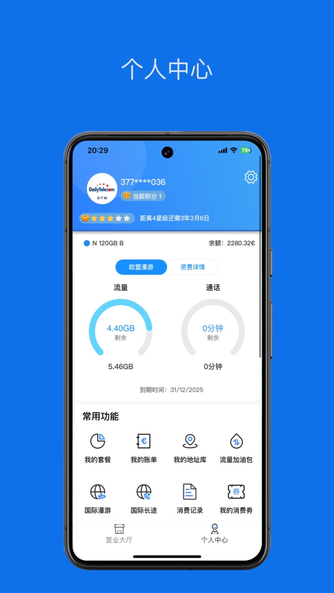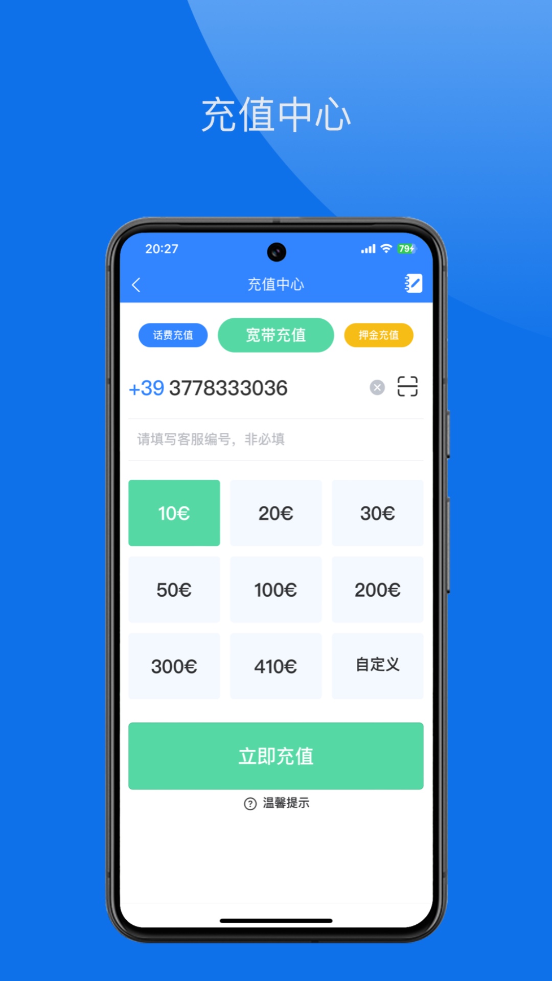 天天电信营业厅APP是面向意大利移动智能终端用户,提供方便快捷的手机钱包充值、套餐办理、话费和流量查询、账单查询、自助开卡、自助宽带、流量加油包、红包转账等功能。让你随时随地享受移动优惠和特色服务,为您打造简单、快乐的“心”体验!无论您身在何处,随时打开“天天电信手机营业厅”客户端,都可享有以下专属服务: 【话费流量一手掌握】 话费流量,随时查询,方便快捷! 【查询办理一键直达】 业务套餐,账单积分,一站式办理! 【专属优惠超值尊享】 独家特惠,充值优惠多,流量低价购! 【活动多多优惠券不断】 每天参与活动,轻松优惠券兑不停!